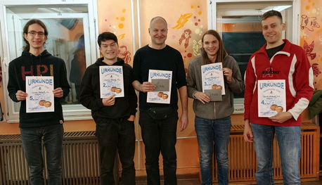 Es gewann KIM Seongjin, 7D vor WU Haohan, 5D und Arved Pittner, 5D. Adam Dottan, 3D gewann den Jugendpreis.